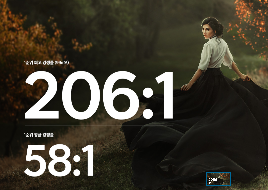 해당지역 경쟁률이 15:1입니다. 전체 경쟁율은 58.7:1입니다.