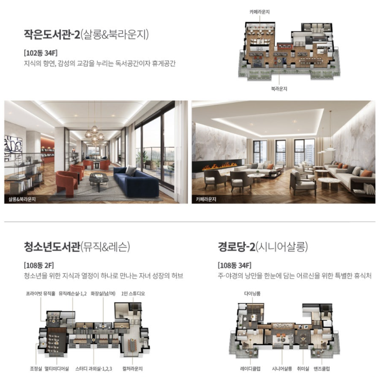 도서관, 경로당, 카페등 없는 게 없는 커뮤니티시설입니다.