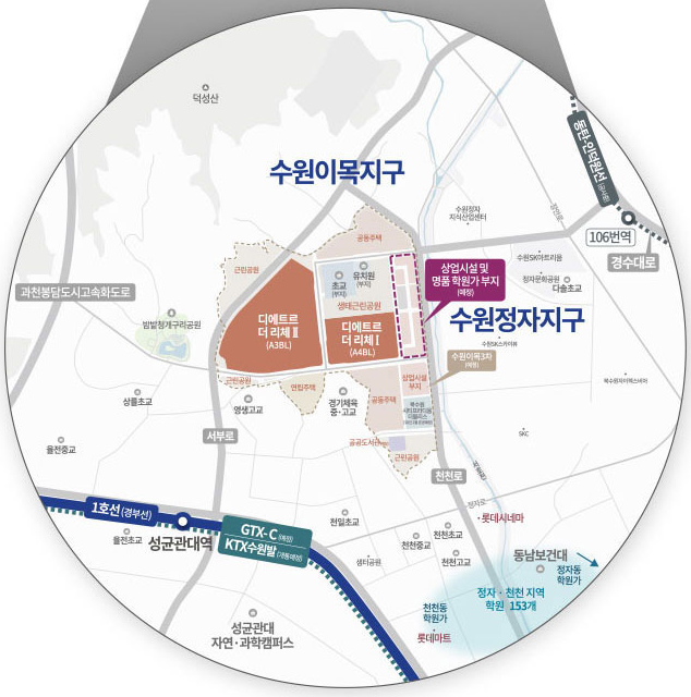 상업시설이 들어오는 상업지구도 있고 학원가가 형성된 부지가 있어서 초품아에 학원가까지 있으면