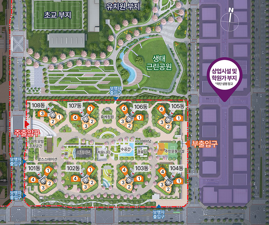 초등학교와 유치원 부지까지 예정되어 있는 에듀타운 특화 단지입니다.