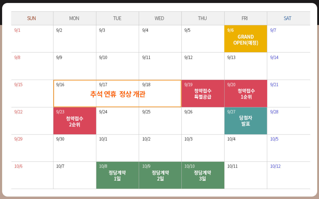 9월 6일에 모델하우스를 오픈하였고 추석 지나고 9월 19일부터 청약이 시작됩니다.