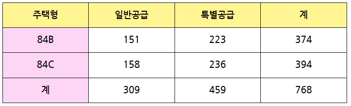 특별공급 459세대는 다자녀 76세대, 신혼부부 138세대. 생애 최초는 146세대, 노부모 부양 23세대, 기관추천 76세대입니다. 특별공급에 해당하는 분은 잘 선택하셔서 당첨의 확률을 높이시면 됩니다.