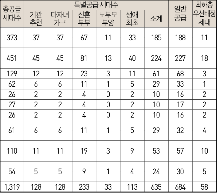 일반분양으로 1319세대와 오피스텔 136실이 일반분양을 합니다.