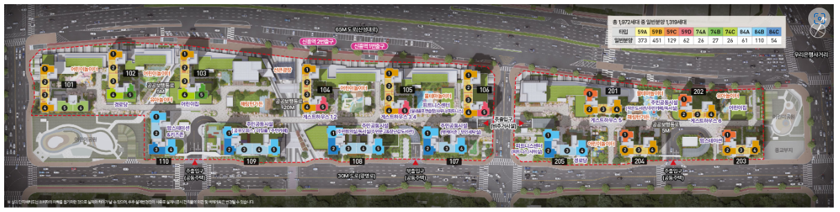 신흥역 해링턴 스퀘어는 1단지와 2단지로 나뉩니다.