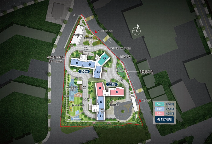 지하 2층 지상 20층으로 2개 동의 총 157세대 아파트입니다.