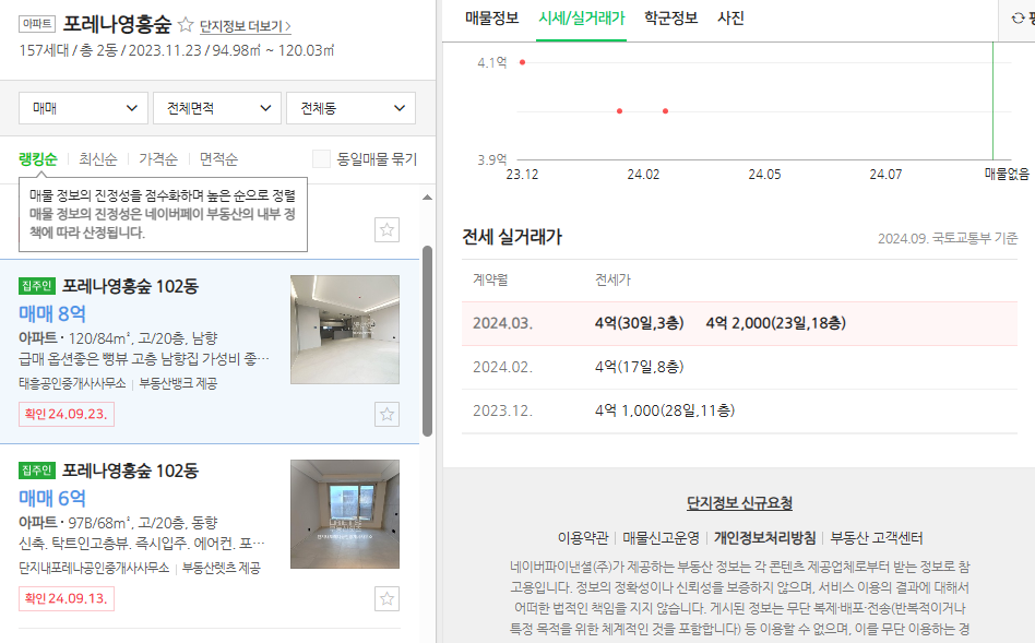 현재 84 타입 매매가는 8억이고 전세가는 4억 선입니다.