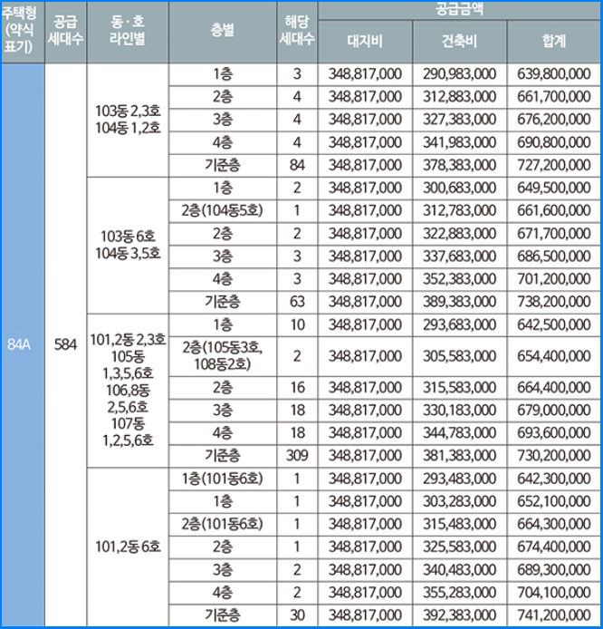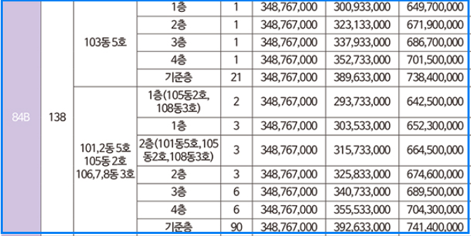 84B 타입의 최저 분양가는 6억 4250만 원