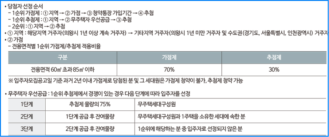 가점제 70%로 의왕시 1년 이상 거주자 우선입니다.